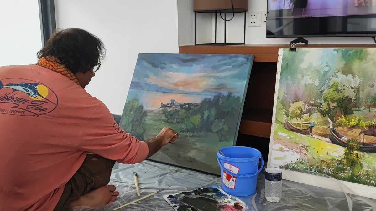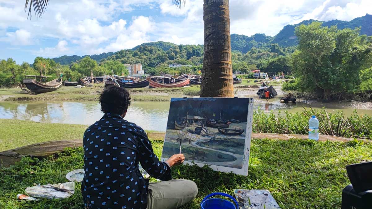 The five-day residential art camp took place at the United Land Port, located on the scenic banks of the Naf River in Teknaf- a setting enriched by the harmonious presence of rivers, hills, the sea, and untouched natural landscapes.