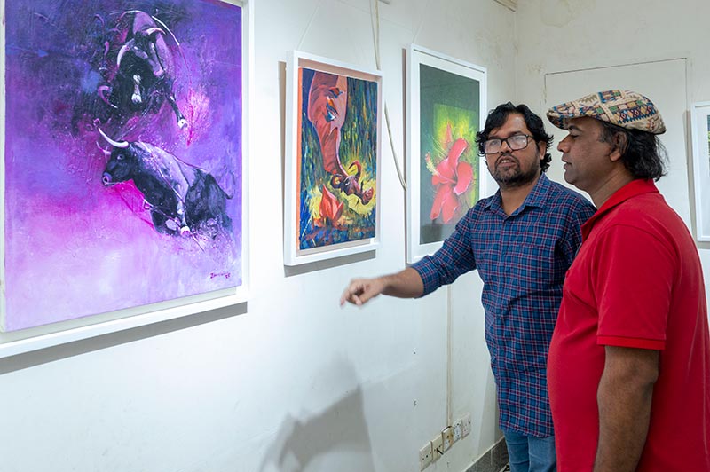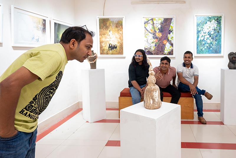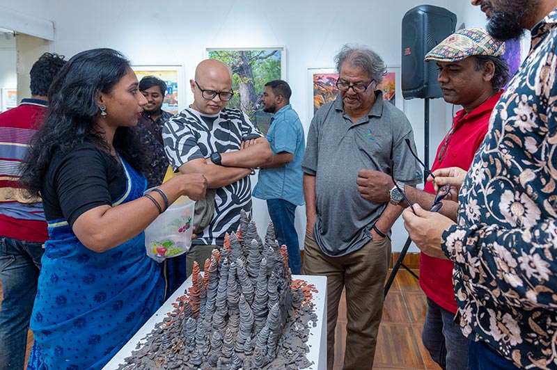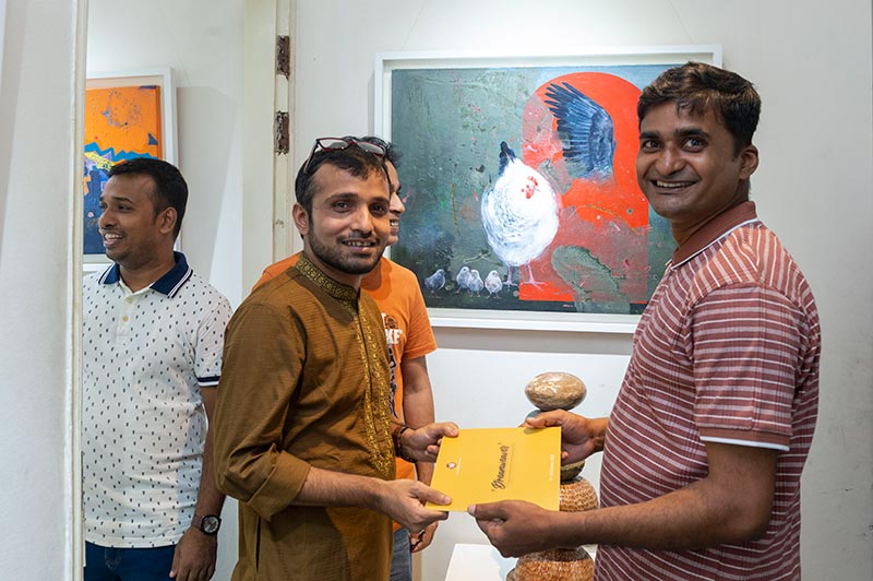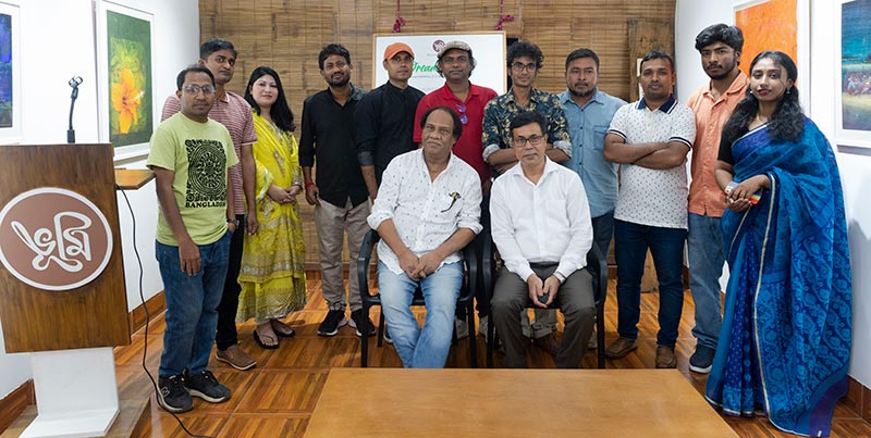 Participating artists include Biplob Chakroborty, Monjur Rashid, Ziaur Rahman, Azmal Hosen, Maneek Bonik, Nargis Poly, Soikat Hossain, Anamuz Zahid, Iskindar Mirza, Nabaraj Roy, Lekhnesa Khushi, and Jolok Saha.
