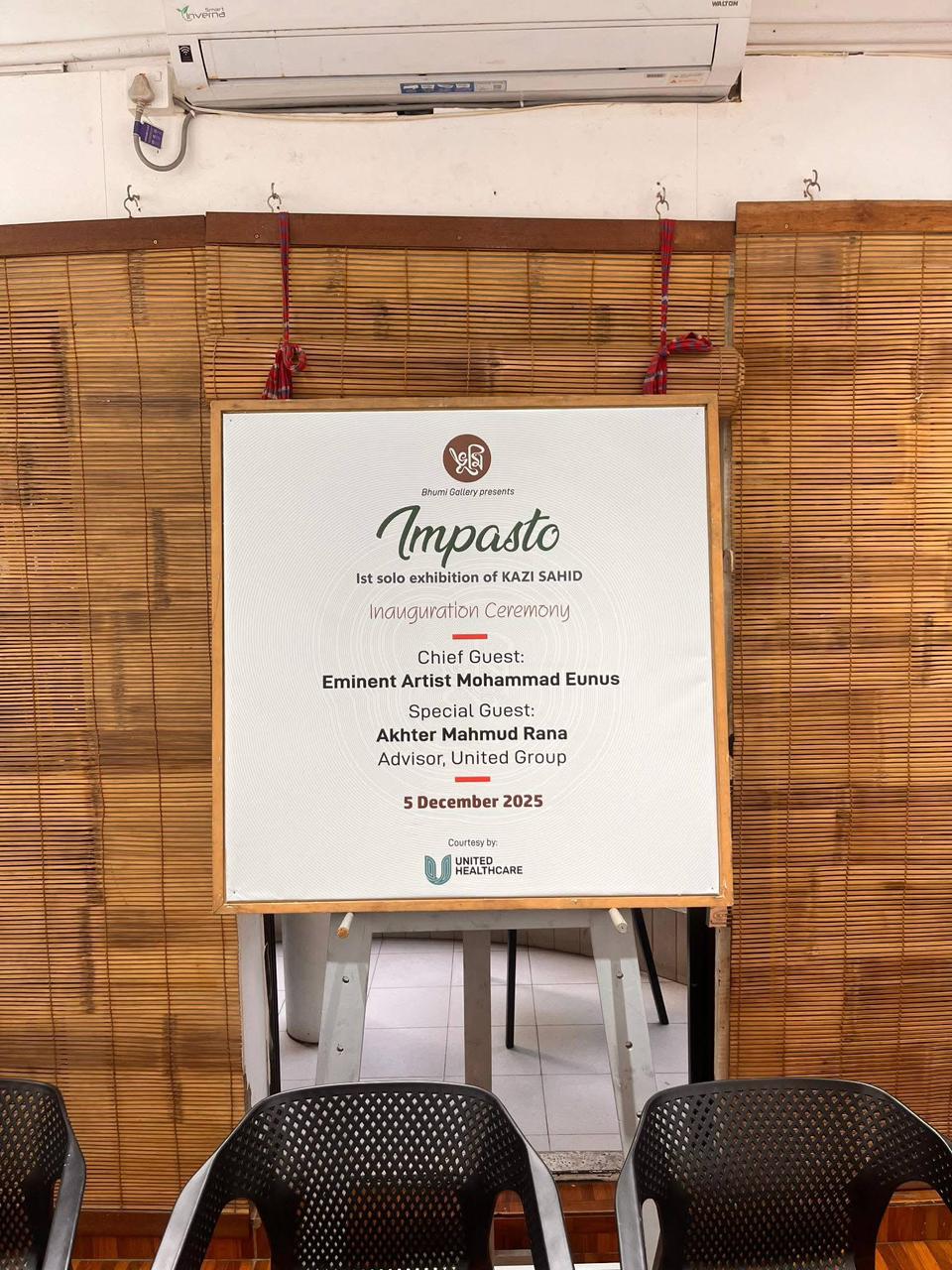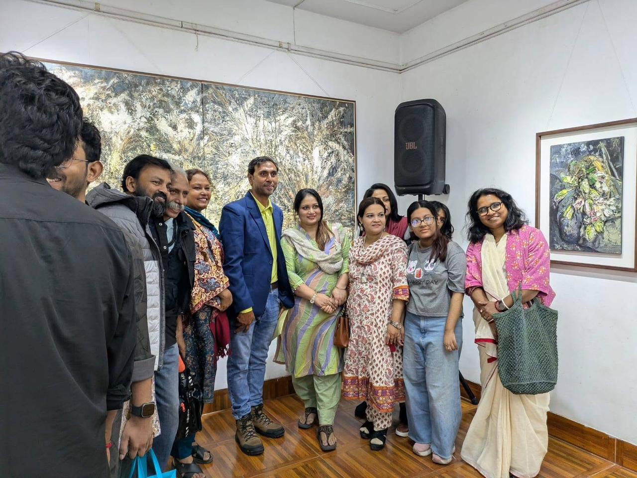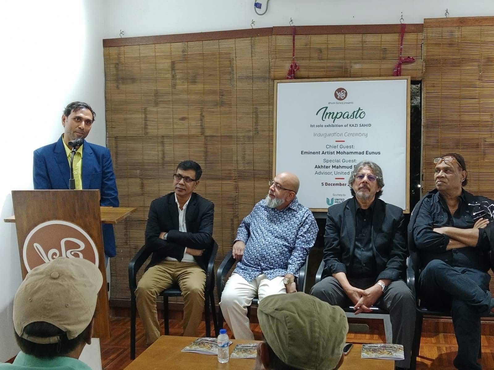 By the initiative of Bhumi Gallery, on Friday evening, December 5, 2025, the inaugural ceremony of “Impasto,” the first solo painting exhibition by the bold and talented contemporary artist Sahid Kazi, was organized. The event took place at Bhumi Gallery in Lalmatia, with the eminent painter Mohammad Eunus attending as the chief guest, and renowned artist Jamal Ahmed and United Group advisor Akhter Mahmud Rana attending as special guests.