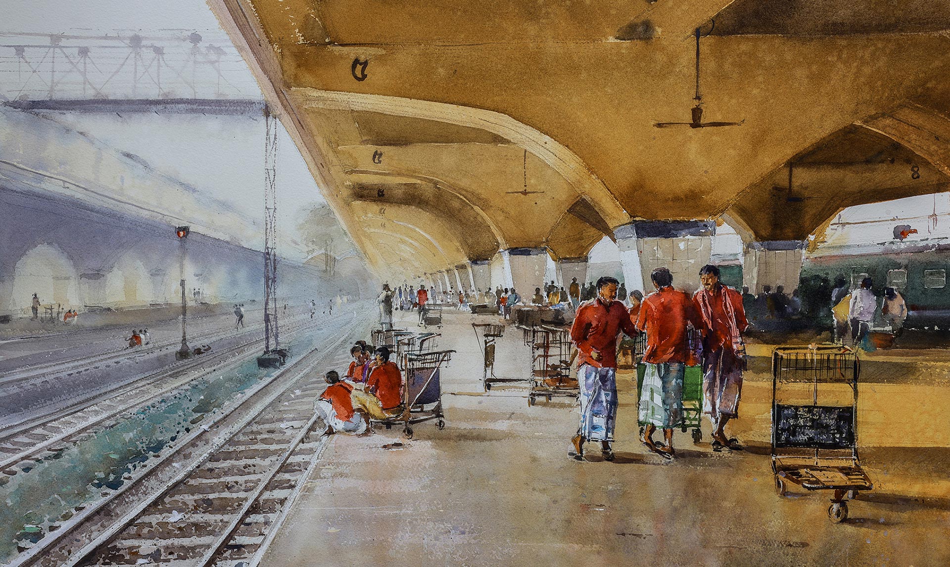 The images in the show diverge in two directions: an attitude that extends the scenic reality of Dhaka city life into an integration of impression and picturesque translation, interpreting essence and capturing still frames in a relationship between the artist’s time and historical memory resonance.