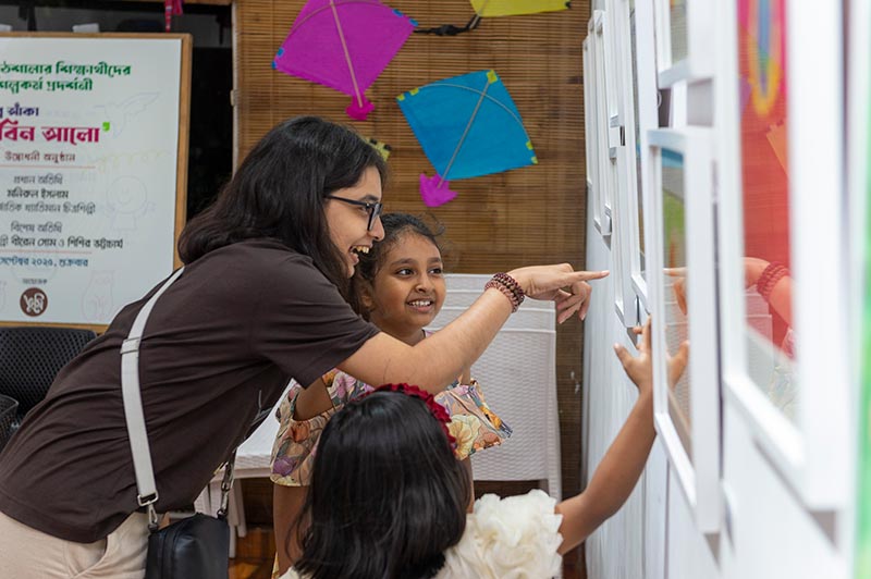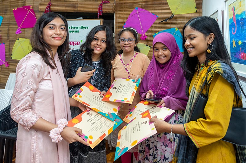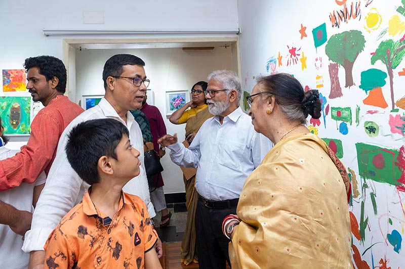 Over the past year, this philosophy has borne fruit. The exhibition, held from September 26 to 28, presented the vibrant works of these young artists, which captivated both established painters and visitors alike. Renowned international artist Monirul Islam and eminent painter Biren Shome inaugurated the event, expressing delight and admiration for the creativity and confidence reflected in the children’s work.